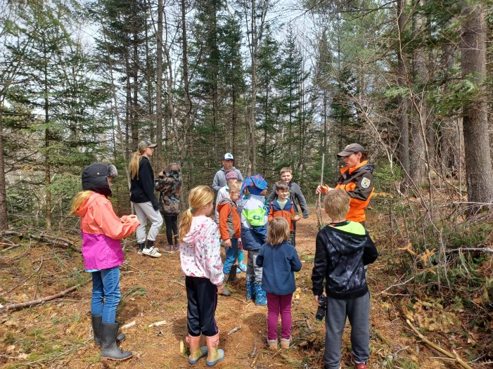 A local homeschool group enjoyed learning about refuge habitats and wildlife at the Nulhegan Basin Division in Vermont, on a rainy spring morning. They explored the exhibits and walked the Nulhegan River Trail to learn about ephemerals and birds, and had a chance to ask a biologist questions.