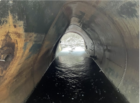 The Yellow Branch of the Nulhegan River passes under the Eagles Nest Road through a 6 foot steel ‘culvert’. The existing culvert appears to have previously been a steel tank that was converted into a culvert. The structure is ranked as a priority replacement, as it is undersized for the location (less than bank full width) and it doesn’t allow for adequate aquatic organism passage. The refuge is working with the Connecticut River Conservancy to design a replacement structure for the site. The culvert will be replaced in 2024. The project is being funded by the Inflation Reduction Act.
