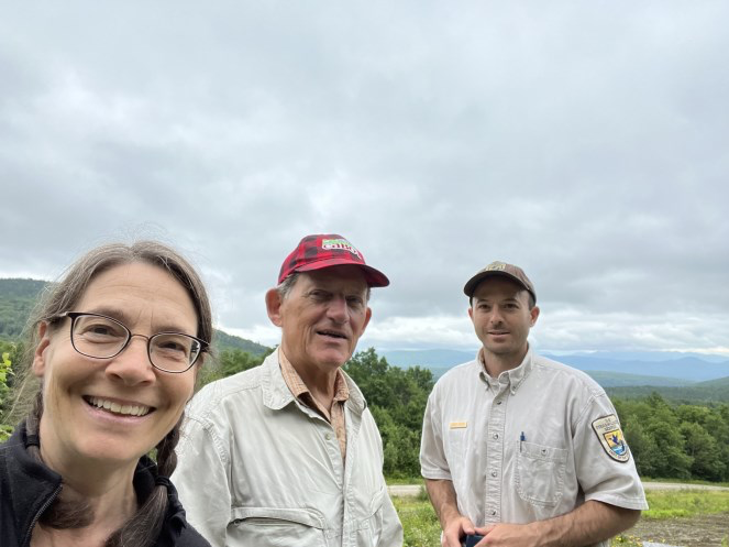 In late June, refuge staff provided Rebecca Ellis (Senator Welch’s state director) and Tom Berry (Great Lakes Fishery Council) a tour of the Nulhegan Basin Division. The tour included a discussion of ongoing wildlife research, forest management and aquatic connectivity restoration work on the refuge. Refuge staff highlighted how the Bipartisan Infrastructure and Inflation Reduction Act funds will be used for aquatic and terrestrial habitat management and restoration on the refuge.