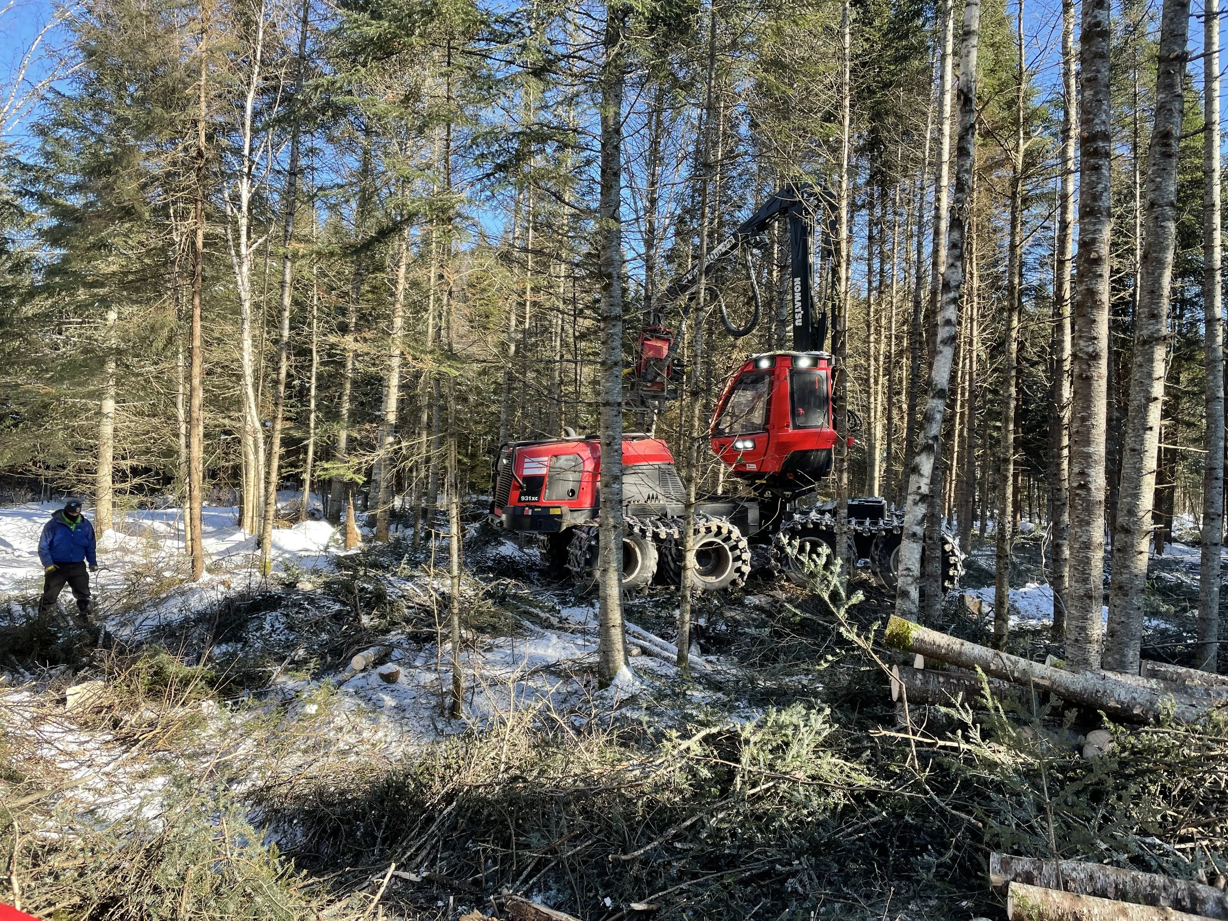 Some of the participants had years of related forestry experience, making the questions informed and adding much to the richness of the conversation. Those willing to continue braving the near zero degree temperature walked up to the area where research-driven tree harvesting was ongoing to view the machine in action and hear from the operator. The tour was very well done, very informative. More such tours will be offered during the current year and the years to come as the project progresses.