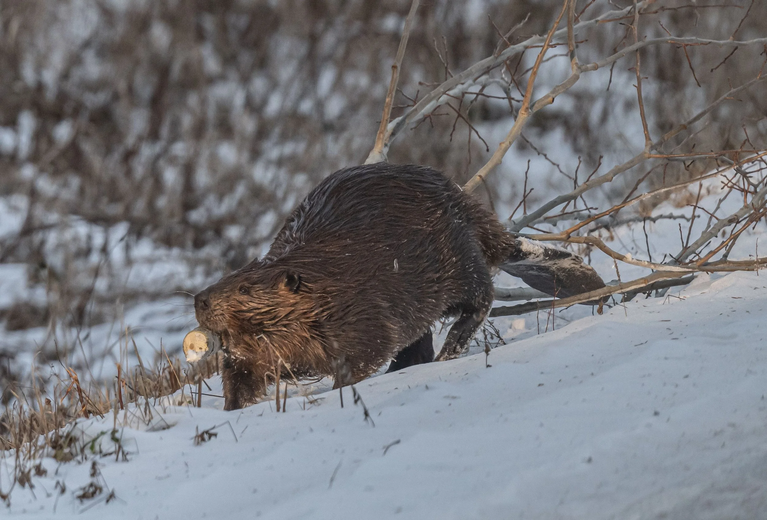 Thank you, David Govatski, for capturing this beaver hard at work, dragging an aspen branch across Stone Dam Road to a bank lodge on the Nulhegan River.