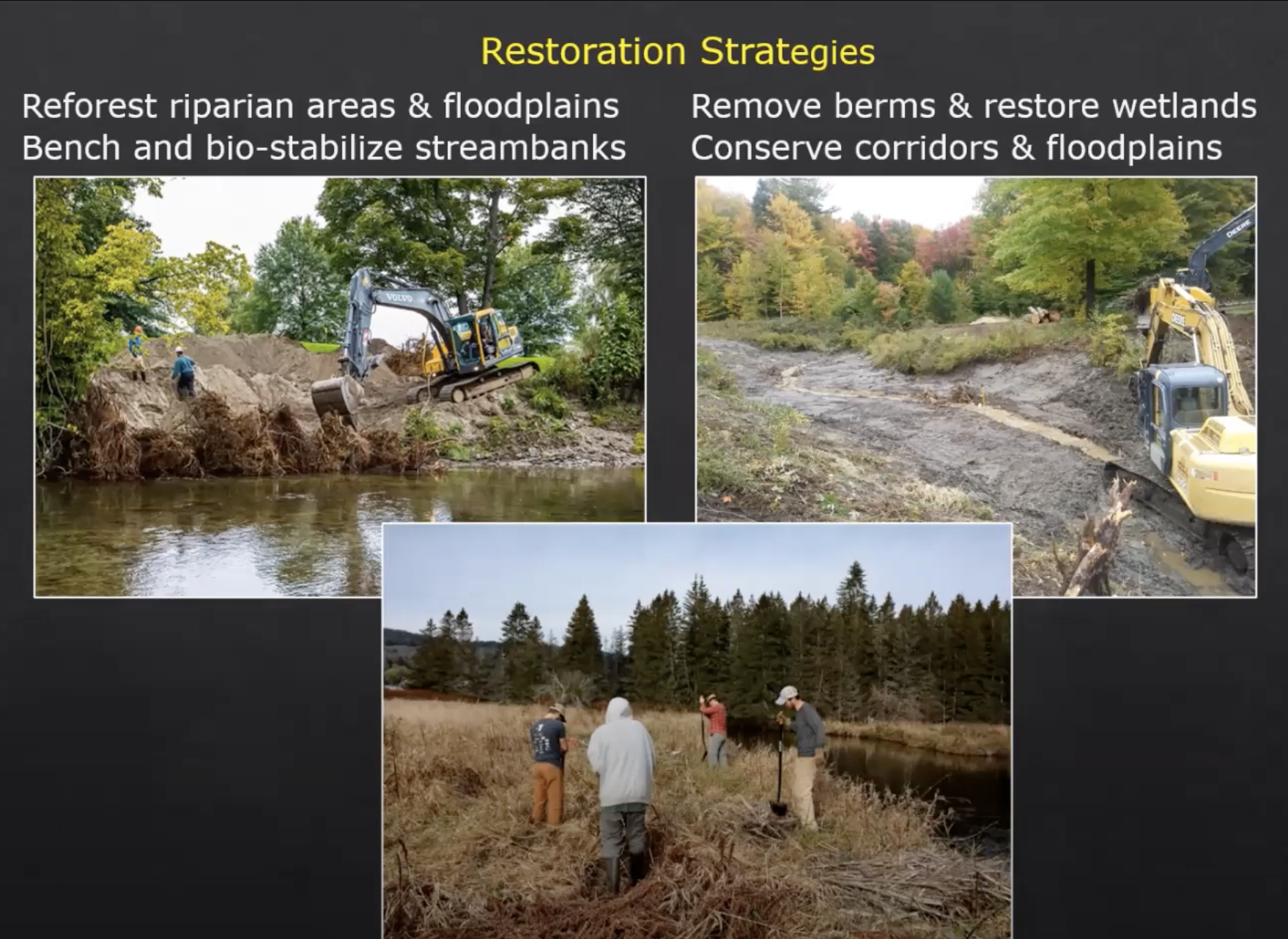The meeting began with a presentation by Dr. Fritz Gerhardt of the Connecticut River Conservancy (CRC), in which he shared a slide show about the work of the CRC. The CRC has been working since 1952 in the entire watershed of the 410 mile long Connecticut River, from the Quebec/New Hampshire border to Long Island Sound, running a wide range of programs focused on the protection and restoration of ecosystems within the watershed. Dr. Gerhardt’s work through the CRC is geared toward restoring riparian areas, restoring flood plain forests, reducing erosion, protecting water quality, and improving fish and wildlife habitats. This work involves: